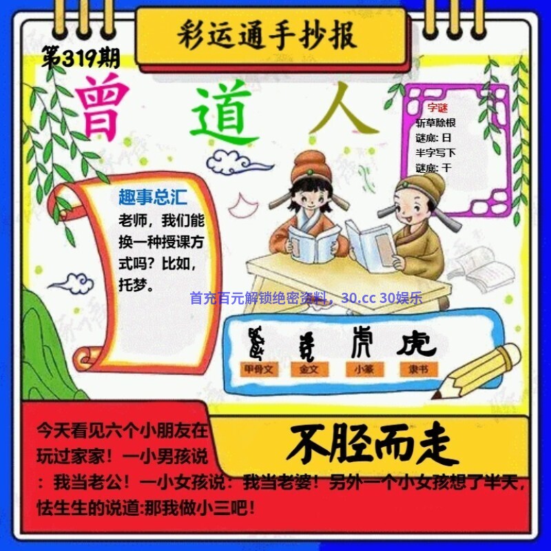 319期:曾道人手抄报 解:老师,我们能换一种授课方式吗?比如,托梦。 七肖:鼠龙虎牛兔鸡猴 |